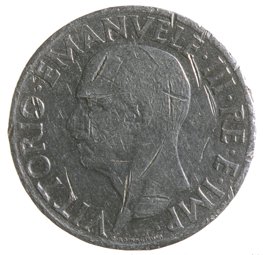 Centralni dio zauzima orao raširenih krila iza kojeg se nalazi fascio.Uz 2/3 ruba nalazi se natpis ITALIA. Ispod orla nalazi se grb , a sa njegove lijeve strane veliko slovo L. i godina 1940. Ispod nje nalazi se malo slovo R. Desno od grba nalazi se broj 1, a pored njega rimski broj XVIII.
