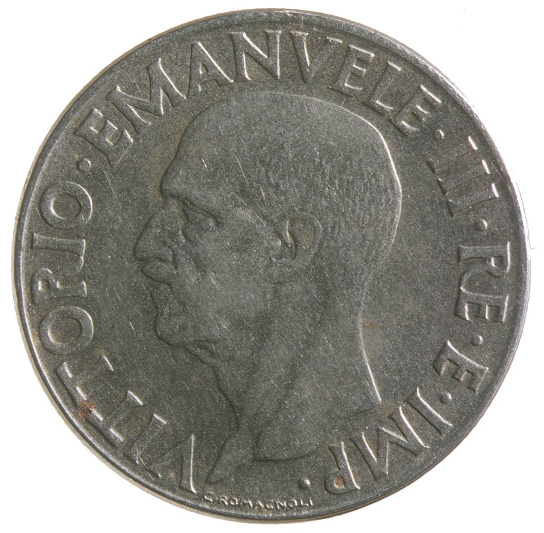 Centralni dio kovanice zauzima profil muške osobe sa pogledom u lijevo. Kružno uz rub kovanice proteže se natpis VITTORIO. EMANVELE. III. RE. E. IMP.. Na dnu uz rub nalazi se natpis G.ROMAGNOLI.