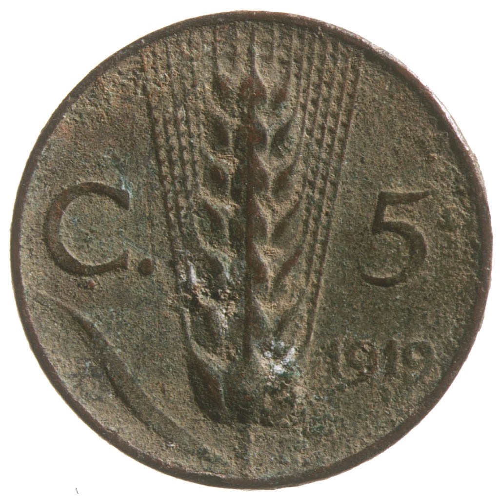 Centralni dio reversa zauzima klas pšenice sa čoje se lijeve strane nalazi slovoC, a sa desne broj 5. Ispod broja 5 godina 1919, a u samom dnu slovo R.