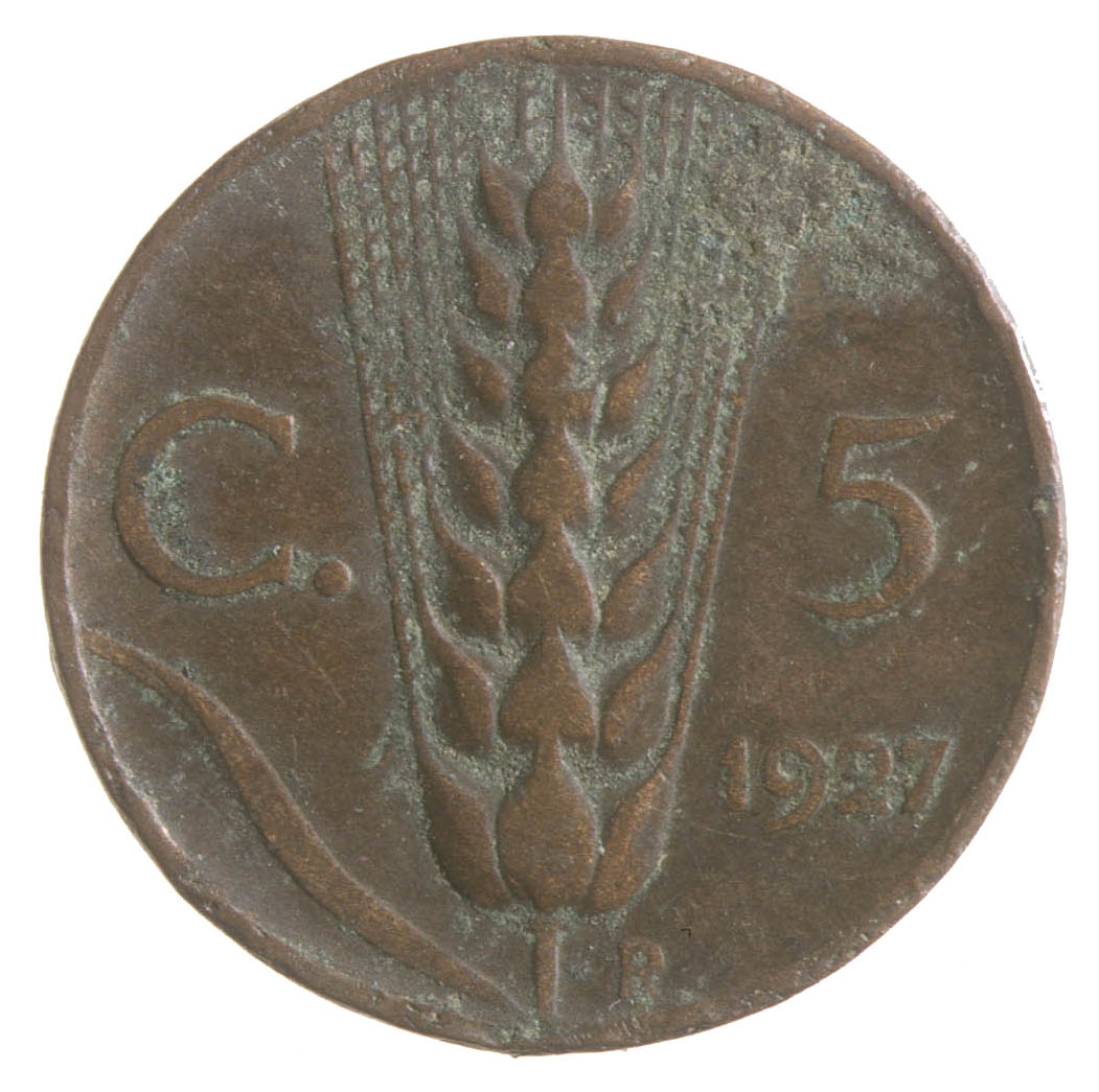 Avers: Centralni dio kovanice zauzima profil muške osobe sa pogledom u lijevo. Kružno uz rub kovanice proteže se natpis VITTORIO. EMANUELE. III. RE. D''ITALIA. Na dnu uz rub kovanice nalazi se natpis A. MOTTI. Revers: Centralni dio reversa zauzima klas pšenice sa čoje se lijeve strane nalazi slovoC, a sa desne broj 5. Ispod broja 5 godina 1927, a u samom dnu slovo R.