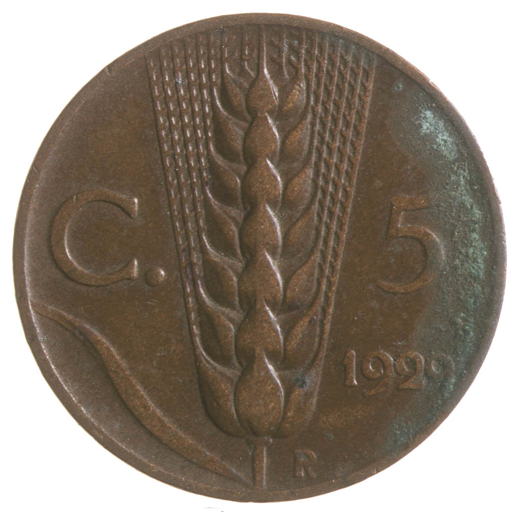 Centralni dio reversa zauzima klas pšenice sa čoje se lijeve strane nalazi slovoC, a sa desne broj 5. Ispod broja 5 godina 1929, a u samom dnu slovo R.