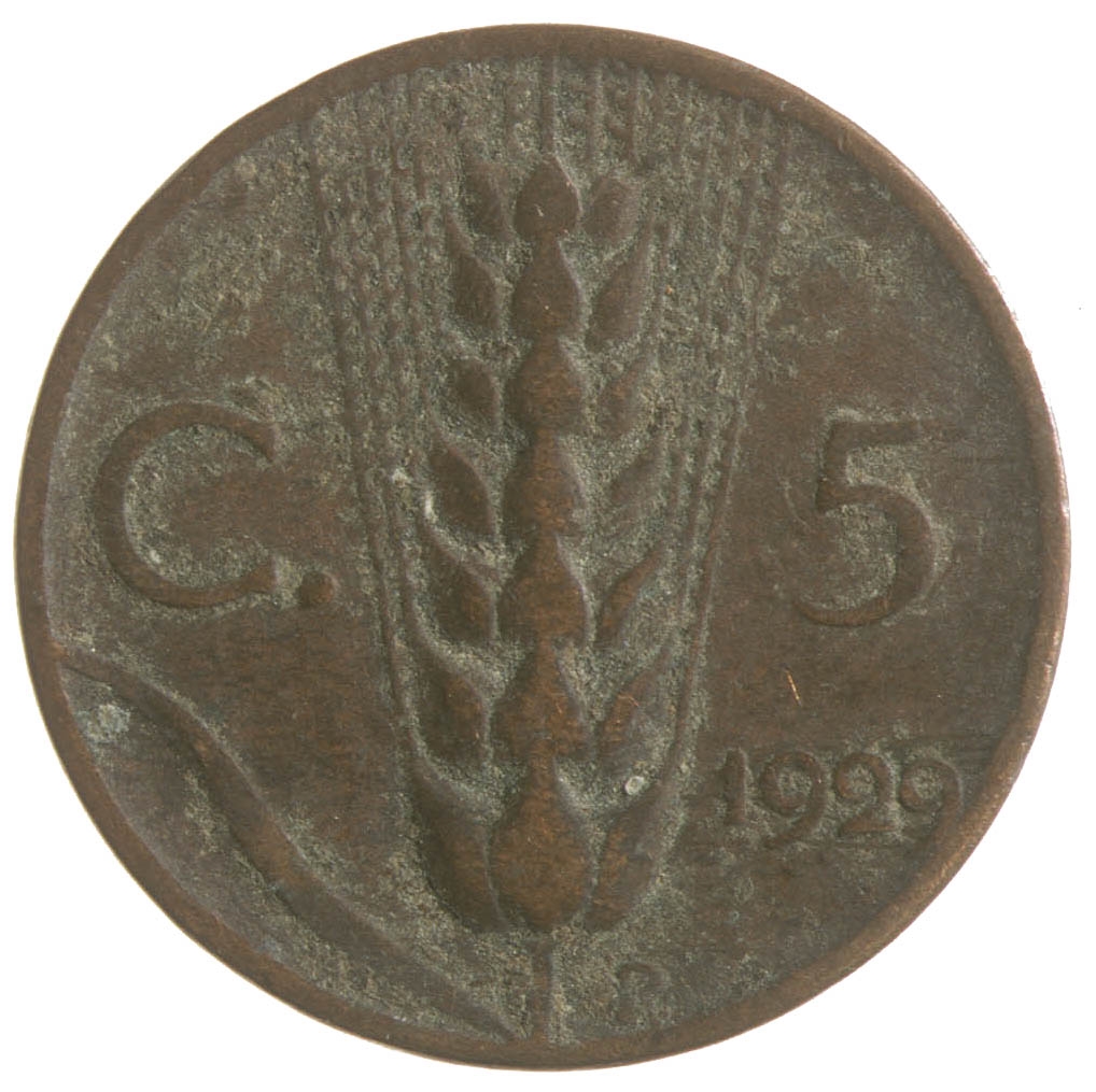Centralni dio reversa zauzima klas pšenice sa čoje se lijeve strane nalazi slovoC, a sa desne broj 5. Ispod broja 5 godina 1929, a u samom dnu slovo R.