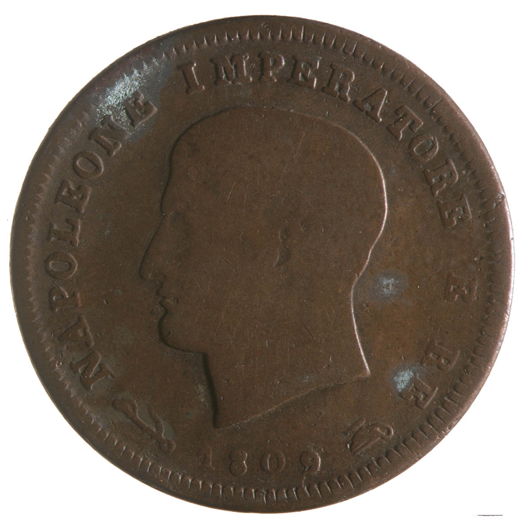 Avers: U sredini profil Napoleona s pogledom u lijevo. Oko ruba natpis NAPOLEONE IMPERATORE E RE , a ispod vrata godinja kovanja 1809.
