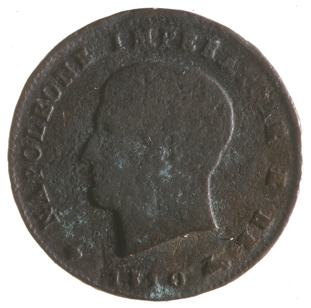 Avers: U sredini profil Napoleona s pogledom u lijevo. Oko ruba natpis NAPOLEONE IMPERATORE E RE , a ispod vrata godinja kovanja 1810. Revers: U sredini radijalna kruna. Iznad nje polukružni natpis REGNO D''ITALIA, a ispod krune oznaka vrijednosti 3. CENTESIMI i slovo ? oznaka kovnice.