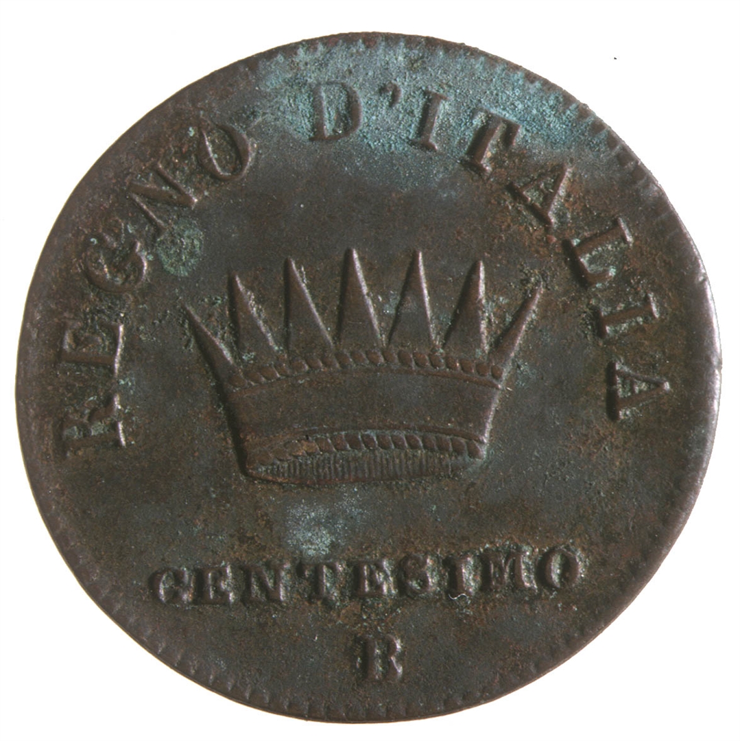 Avers: U sredini profil Napoleona s pogledom u lijevo. Oko ruba natpis NAPOLEONE IMPERATORE E RE , a ispod vrata godinja kovanja 1808. Revers: U sredini radialna kruna. Iznad nje polukružni natpis REGNO D''ITALIA, a ispod krune oznaka vrijednosti CENTESIMO i slovo B oznaka kovnice.