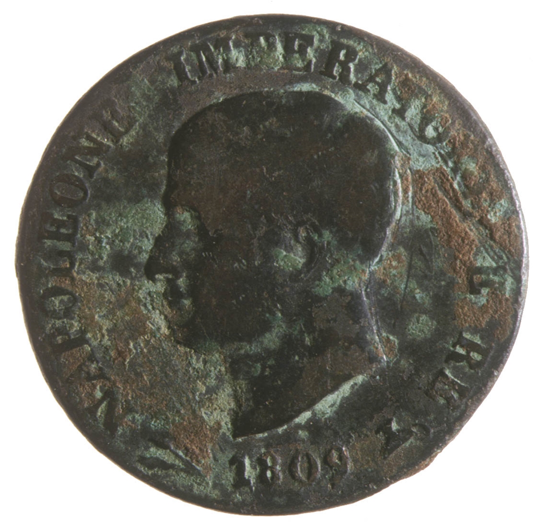 Avers: U sredini profil Napoleona s pogledom u lijevo. Oko ruba natpis NAPOLEONE IMPERATORE E RE , a ispod vrata godinja kovanja 1809. Revers: U sredini radijalna kruna. Iznad nje polukružni natpis REGNO D''ITALIA, a ispod krune oznaka vrijednosti SOLDO i slovo B oznaka kovnice.