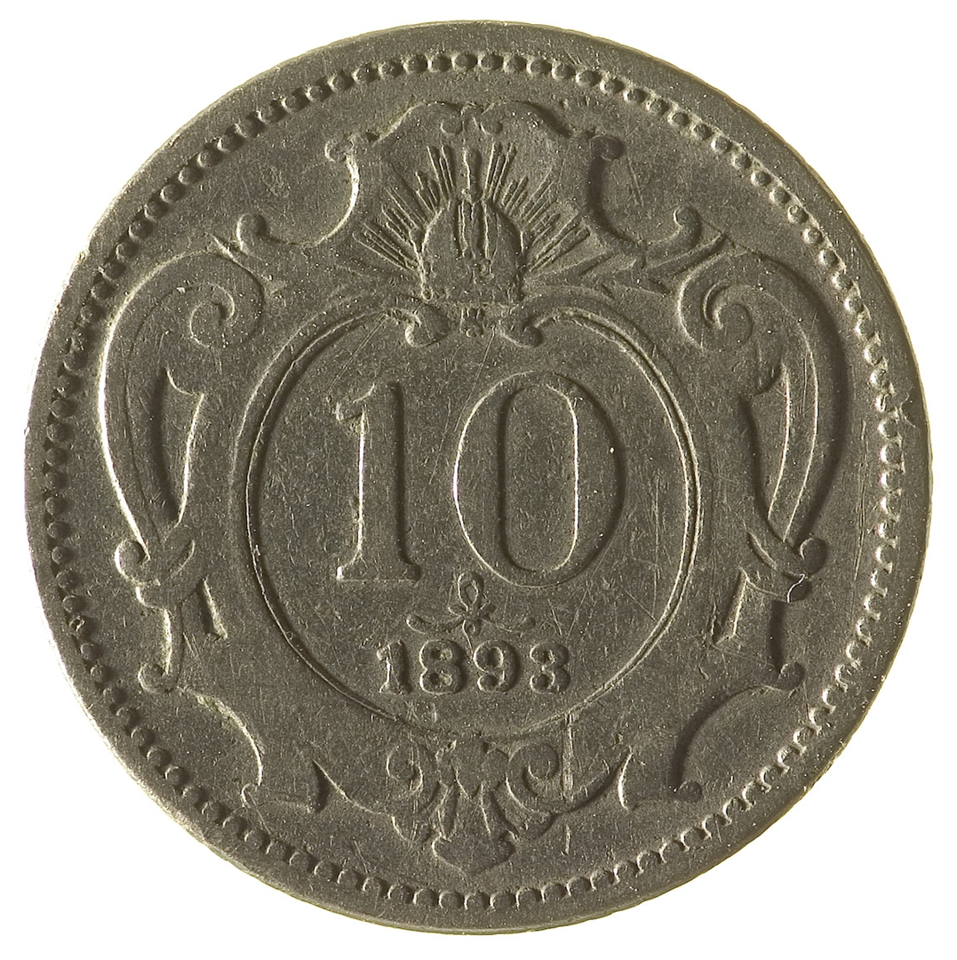 Revers: U sredini unutar ovalno ukrašenog okvira na čijem se vrhu nalazi carska kruna nalazi se broj 10 a ispod njega godina kovanja 1893.