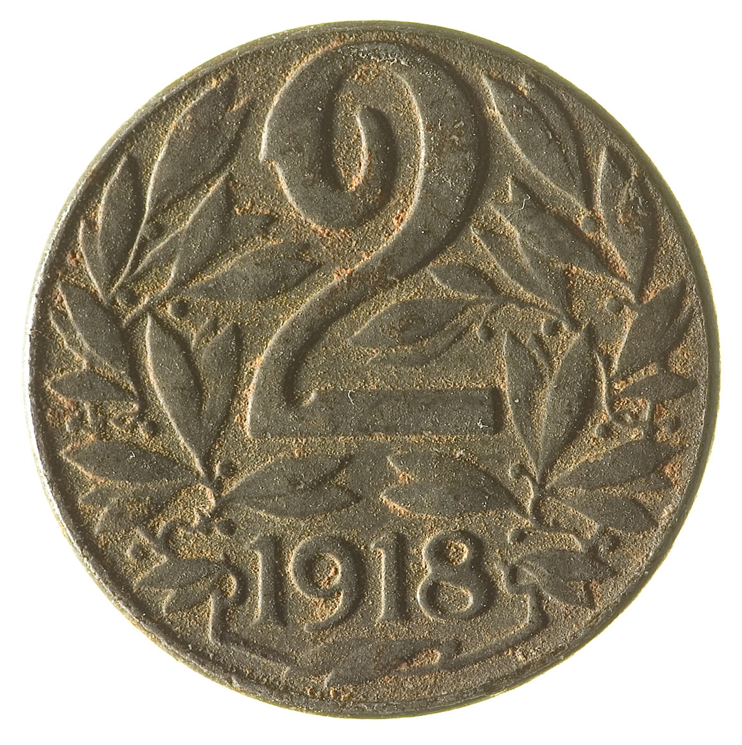Revers: U gornjem djelu broj 2 , a oko njega dvije maslinove grančice. Na dnu godina kovanja 1918.