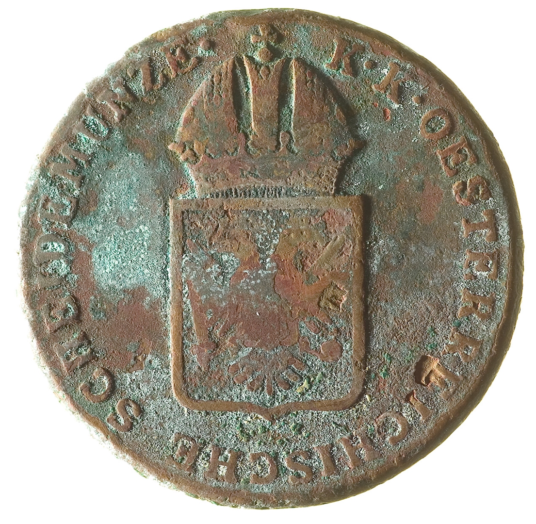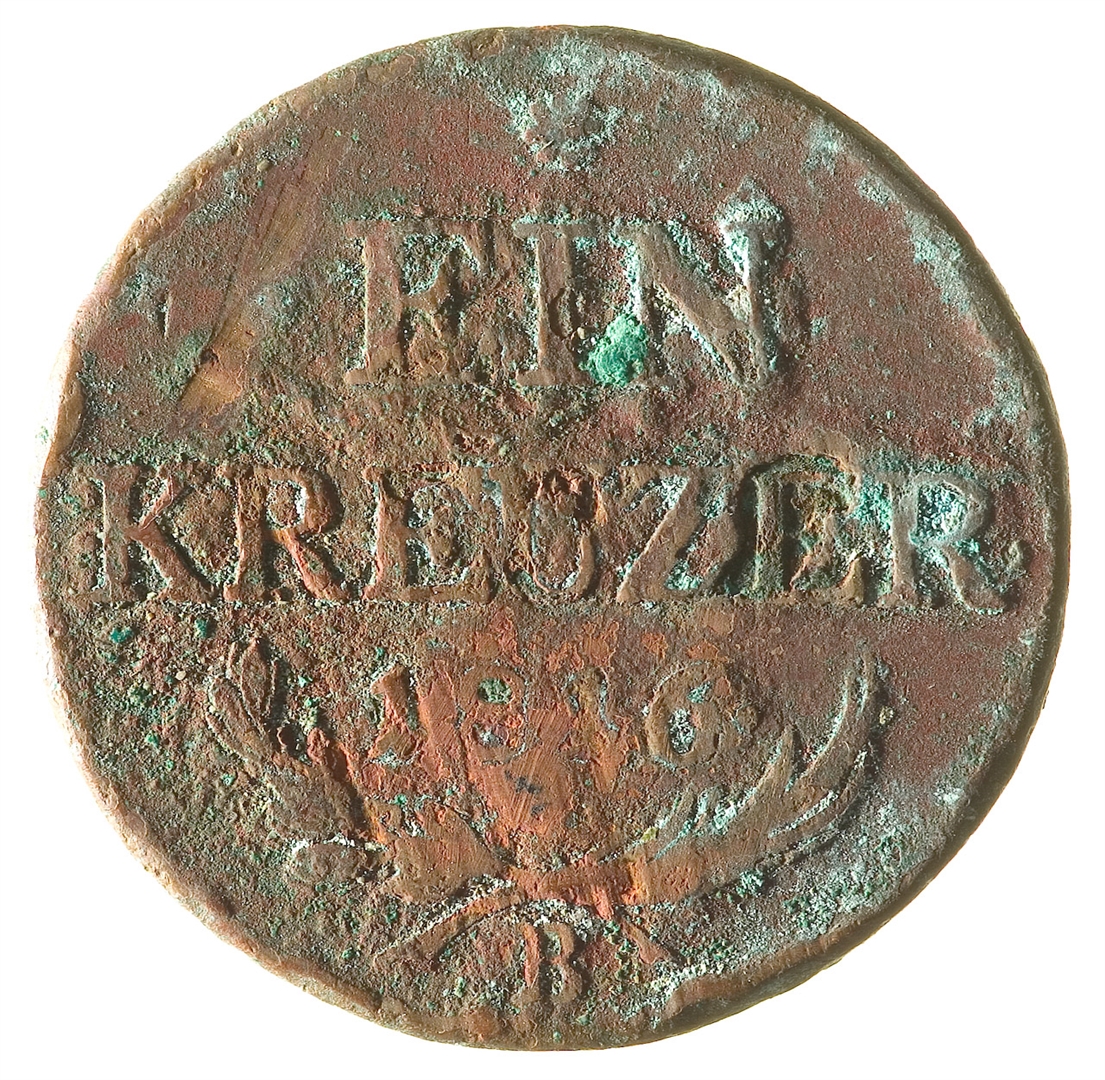 Avers: Austrijski grb iznad kojeg se nalazi kruna. Uz rub natpis K·K·OESTERREICHISCHE SCHEIDEMUNZE·. Revers: Na vrhu *, a u sredini natpis u tri reda EIN / KREUZER· / 1816·. Ispod natpisa dvije grančice ispod kojih se nalazi oznaka kovnice B.