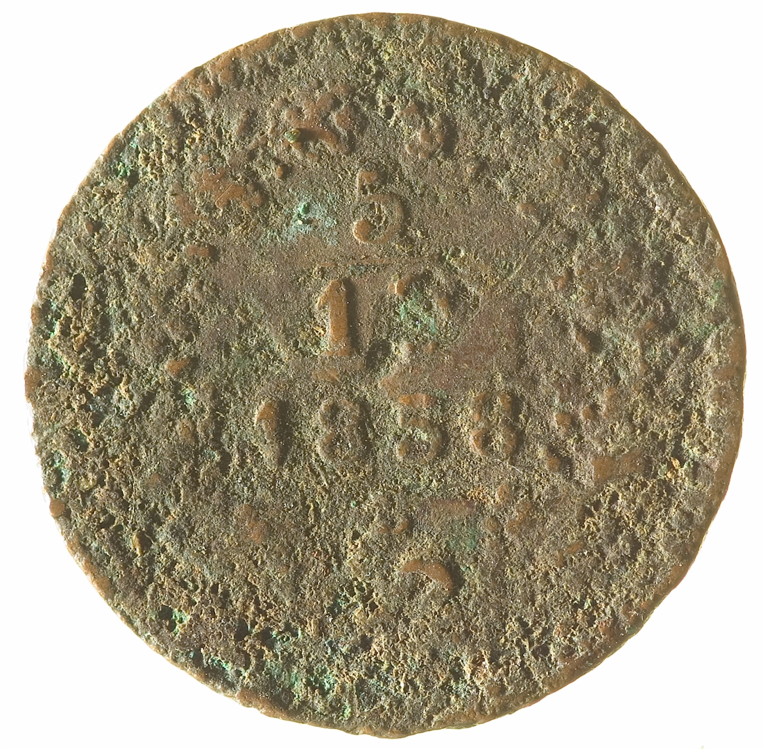 Avers: Avers gotovo u potpunosti izlizan. U sredini grb u obliku dvoglavog orla iznad kojeg se nalazi kruna. Uz rub natpis K·K·OESTERREICHISCHE SCHIEDEMÜNZE Revers: U sredini natpis u četiri reda 5 / 10 / 1858 / B. Uz rub dvije hrastove grančice.