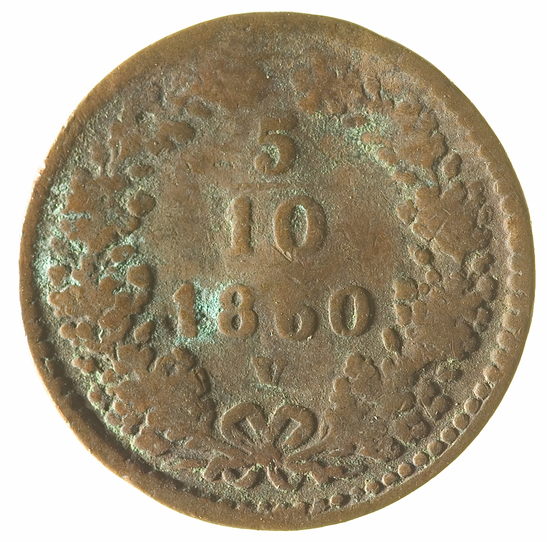 U sredini natpis u četiri reda 5 / 10 / 1858 / V. Uz rub dvije hrastove grančice.