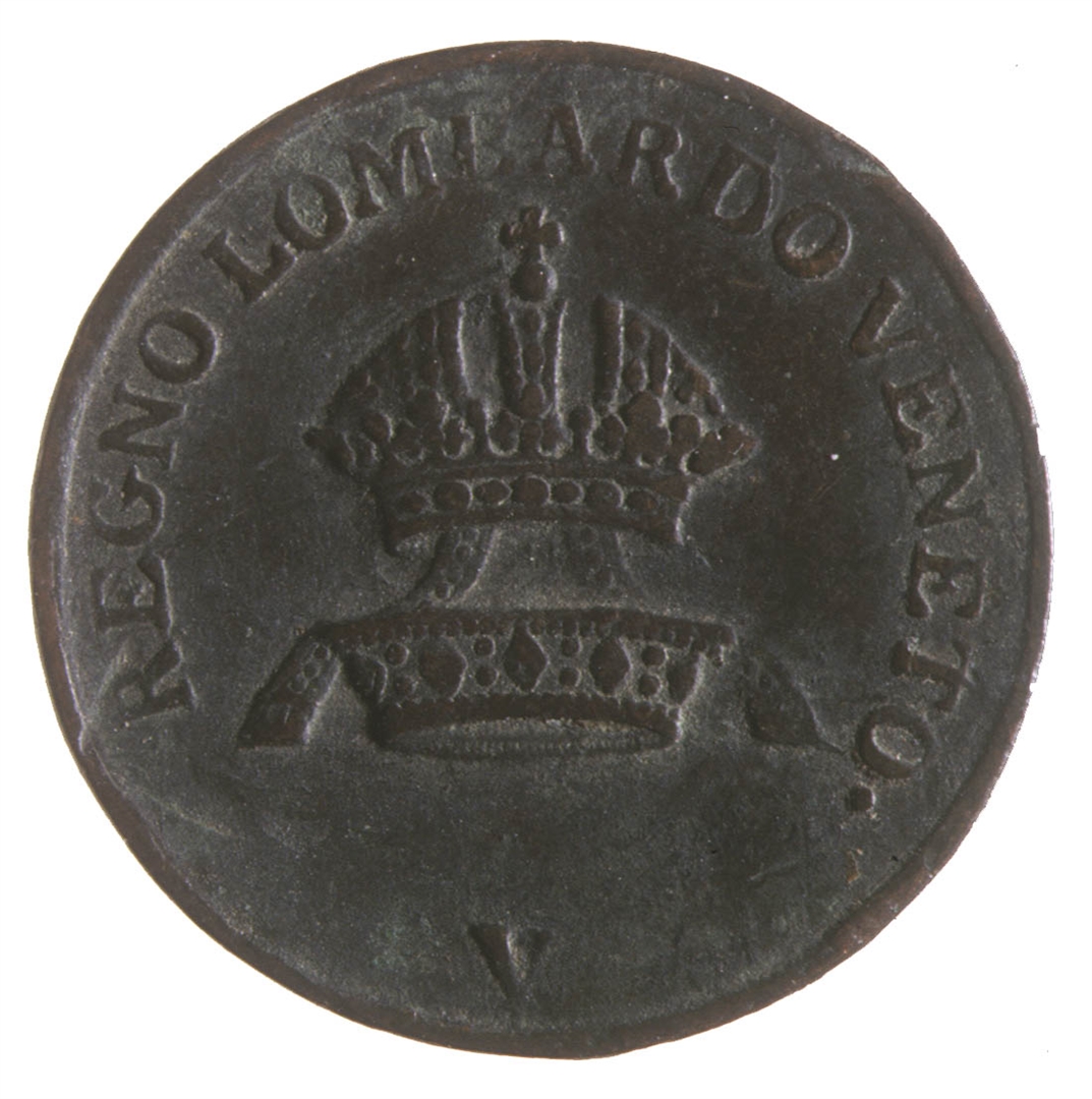 Avers: Austrijska kraljevska kruna sa dvije trake iznad druge krune. Oko ruba natpis REGNO LOMBARDO VENETO •, a u dnu oznaka kovnice V. Revers: U sredini natpis u dva reda 1 / CENTESIMO. U donjem djelu ispod jedne crte gdina kovanja 1834.