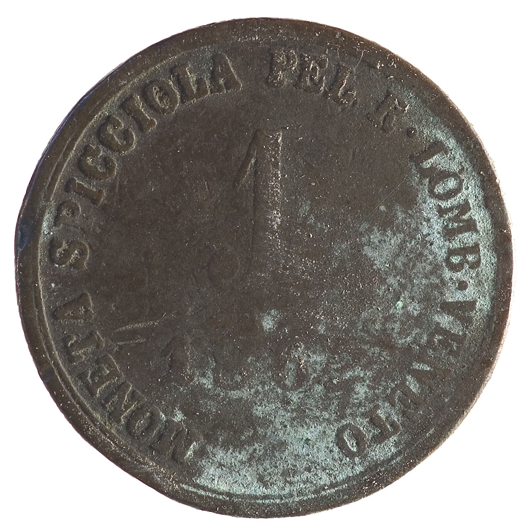 U sredini natpis u dva reda 1 / 1862. Uz rub natpis MONETA SPICCIOLA PEL R • LOMB VENETO.