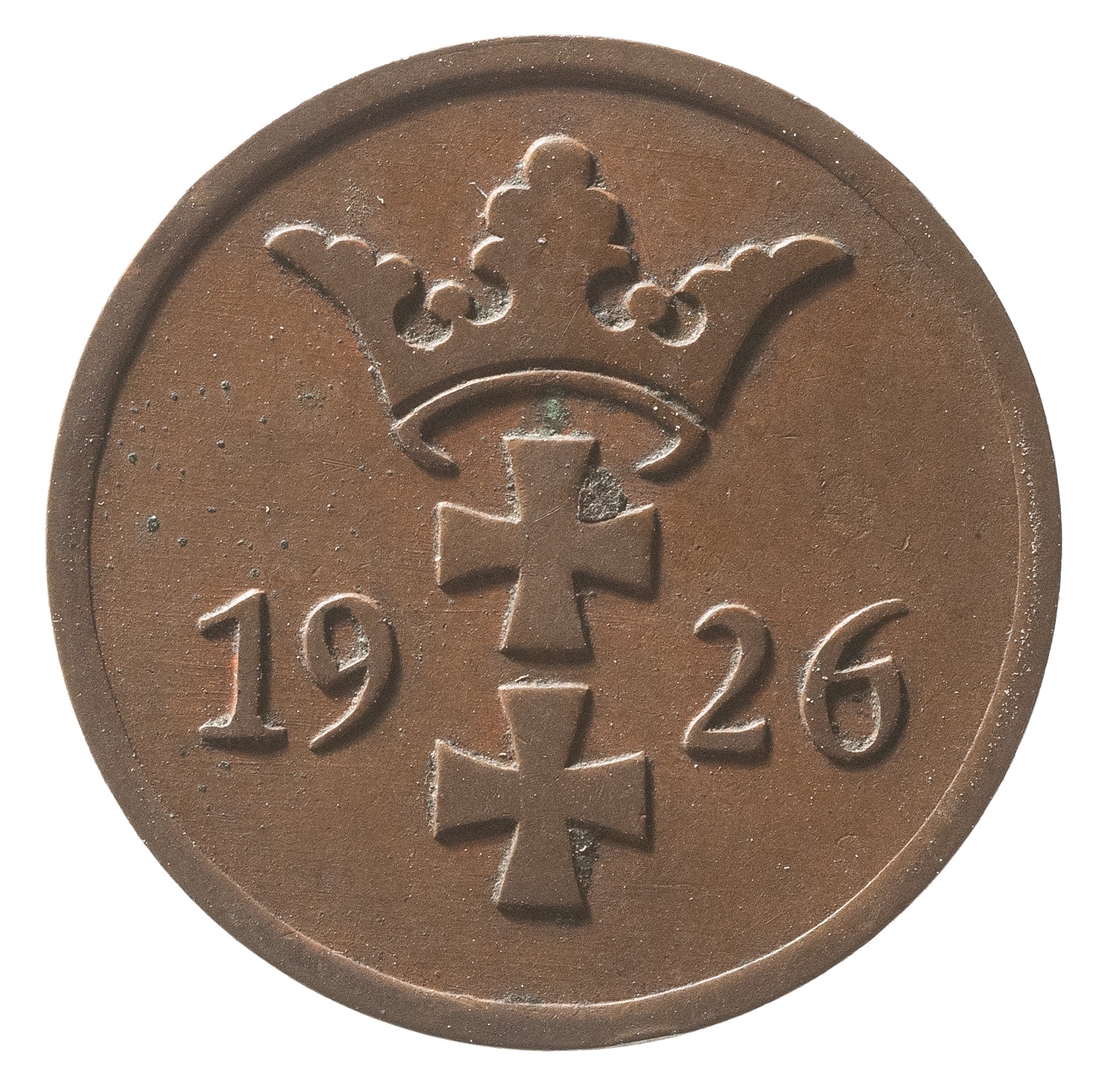 Avers: Natpis u tri reda 2 / Pfenige / Danzing. Revers: Kruna ispod koje se nalaze dva križa i godina kovanja 1926.