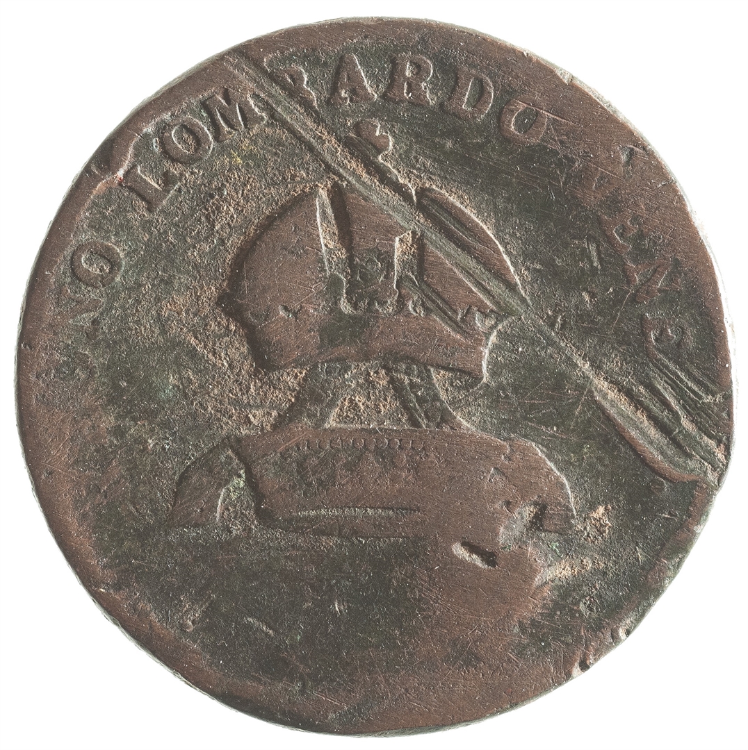 Avers: Austrijska kraljevska kruna sa dvije trake iznad druge krune. Oko ruba natpis REGNO LOMBARDO VENETO •, a u dnu oznaka kovnice V.