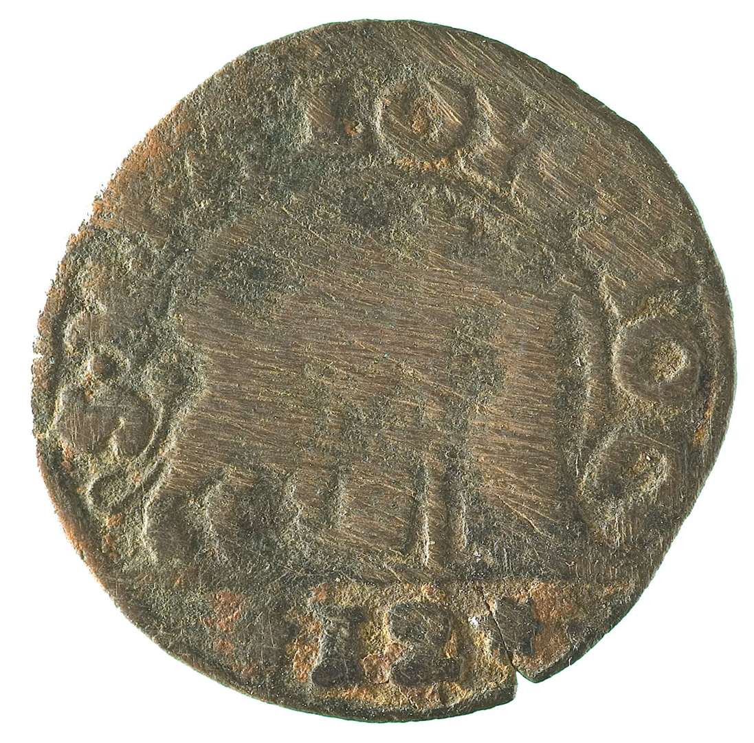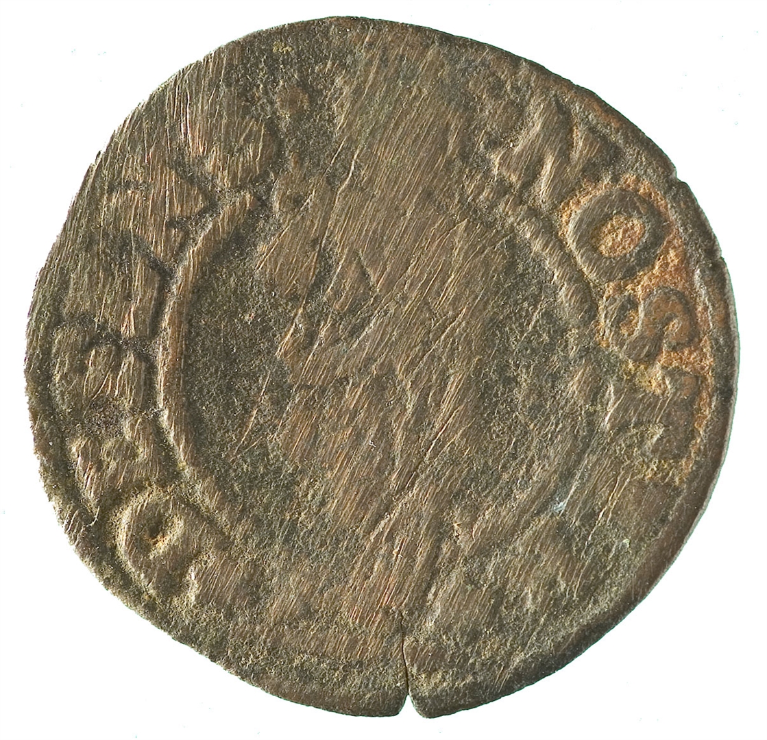 U sredini prikaz Isusa Krista koji desnom rukom blagoslivlja, a u lijevoj drži Evanđelje. Oko ruba natpis * DEFENS . . NOSTER *.