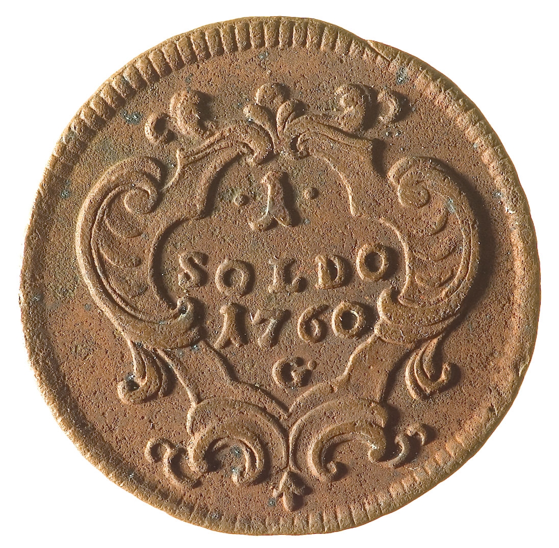 Avers: U sredini, unutar ukrašenog okvira iznad kojeg je kruna, nalazi se grb Gorice sa propetim lavom. Revers: U sredini unutar ukrašenog okvira nalazi se oznaka vrijednosti novca 1 Soldo. Ispod nje nalazi se godina 1760 i oznaka kovnice G.