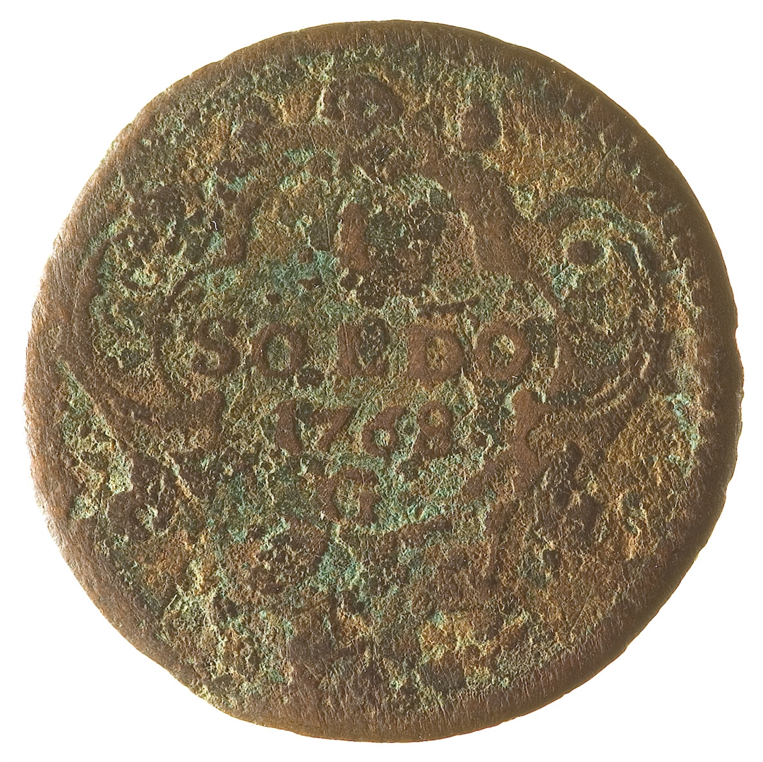 U sredini unutar ukrašenog okvira nalazi se oznaka vrijednosti novca 1 Soldo. Ispod nje nalazi se godina 1768 i oznaka kovnice G.