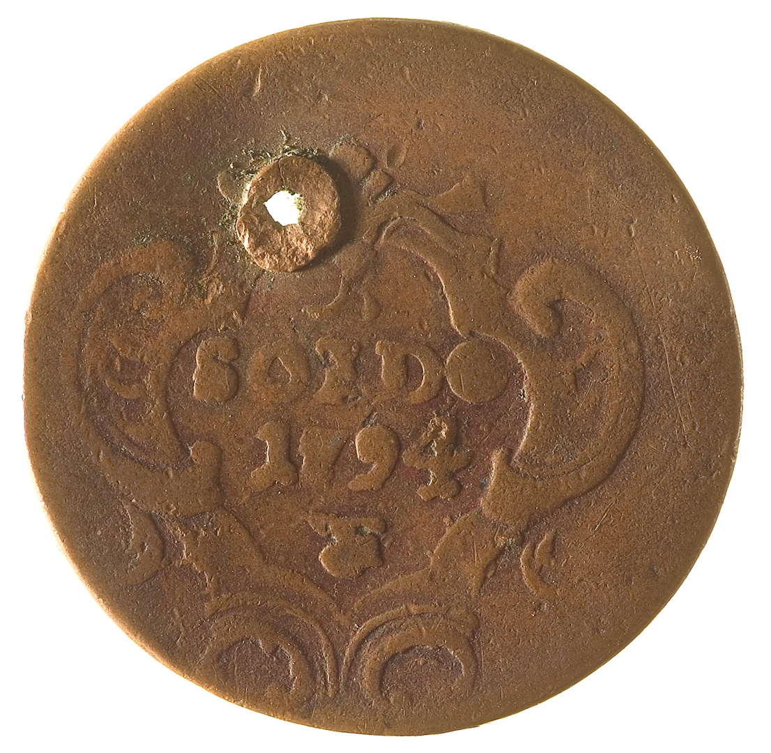 Avers: U sredini, unutar ukrašenog okvira iznad kojeg je kruna, nalazi se grb Gorice sa propetim lavom. Revers: U sredini unutar ukrašenog okvira nalazi se oznaka vrijednosti novca 1 Soldo. Ispod nje nalazi se godina 1794 i oznaka kovnice F.