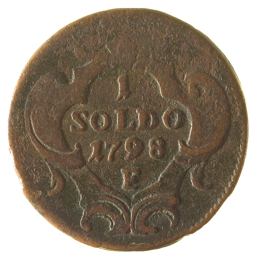 Avers: U sredini, unutar ukrašenog okvira iznad kojeg je kruna, nalazi se grb Gorice sa propetim lavom. Revers: U sredini unutar ukrašenog okvira nalazi se oznaka vrijednosti novca 1 Soldo. Ispod nje nalazi se godina 1798 i oznaka kovnice F.