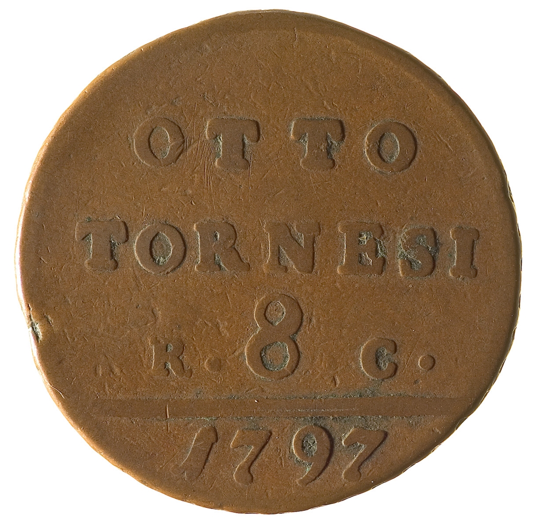 Avers: U sredini portret u desno. Uz rub kružni natpis FERDIN. IV. pri dnu slovo P. Revers: U sredini natpis u tri reda OTT / TORNESI / R. 8 C. U esergu godina 1797.