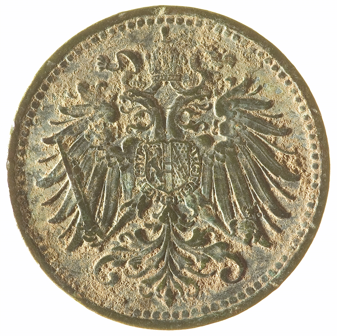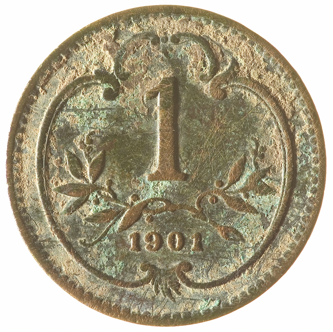 U gornjem djelu ovalnog okvira broj 1. Ispod njega maslinova grančica i godina kovanja 1901.
