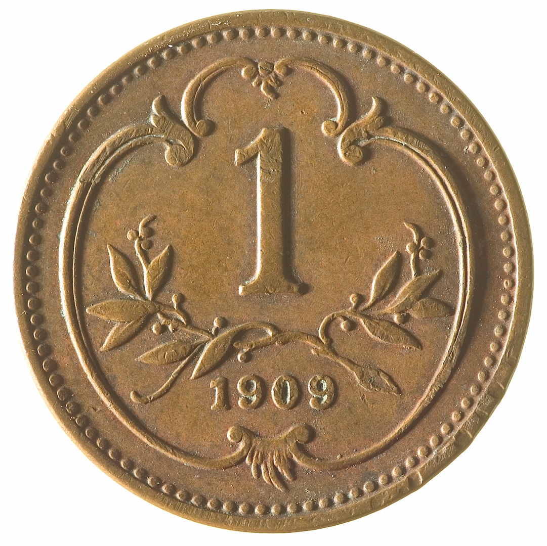 Revers: U gornjem djelu ovalnog okvira broj 1. Ispod njega maslinova grančica i godina kovanja 1909.