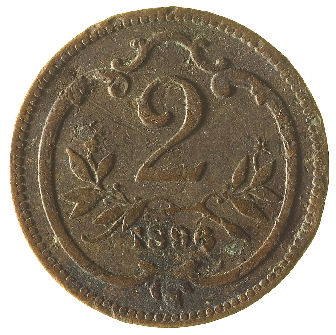 Revers: U gornjem djelu ovalnog okvira broj 2. Ispod njega maslinova grančica i godina kovanja 1896.