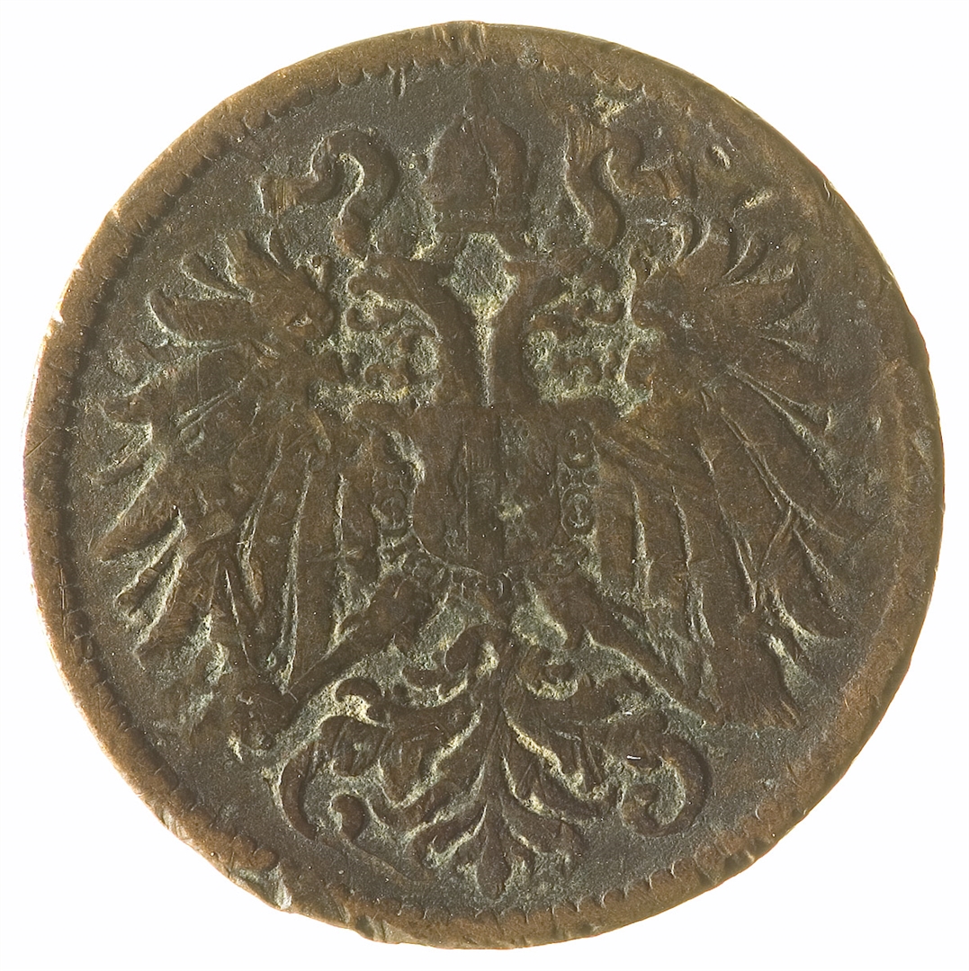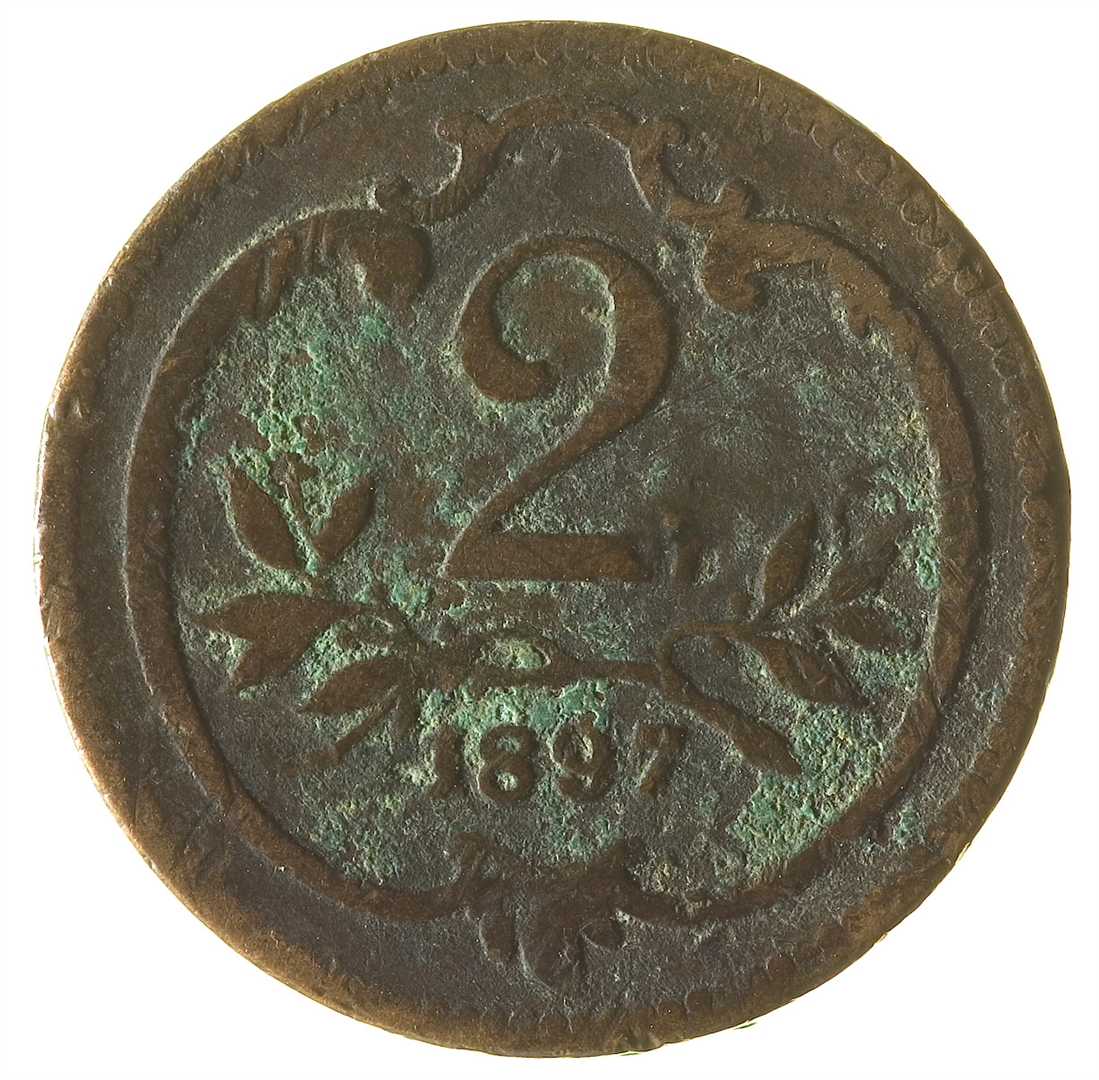 U gornjem djelu ovalnog okvira broj 2. Ispod njega maslinova grančica i godina kovanja 1897.