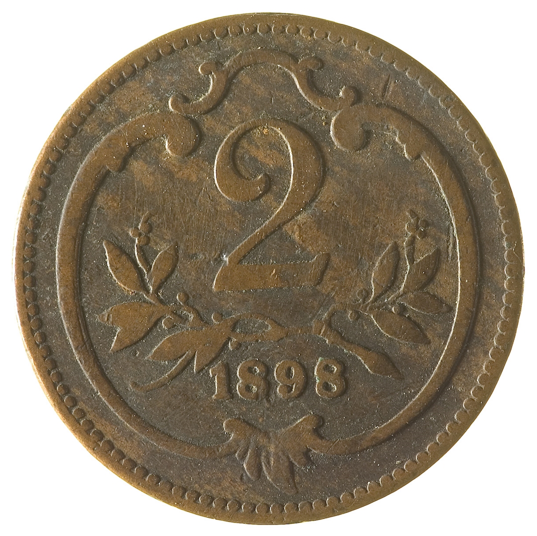 Revers: U gornjem djelu ovalnog okvira broj 2. Ispod njega maslinova grančica i godina kovanja 1898.