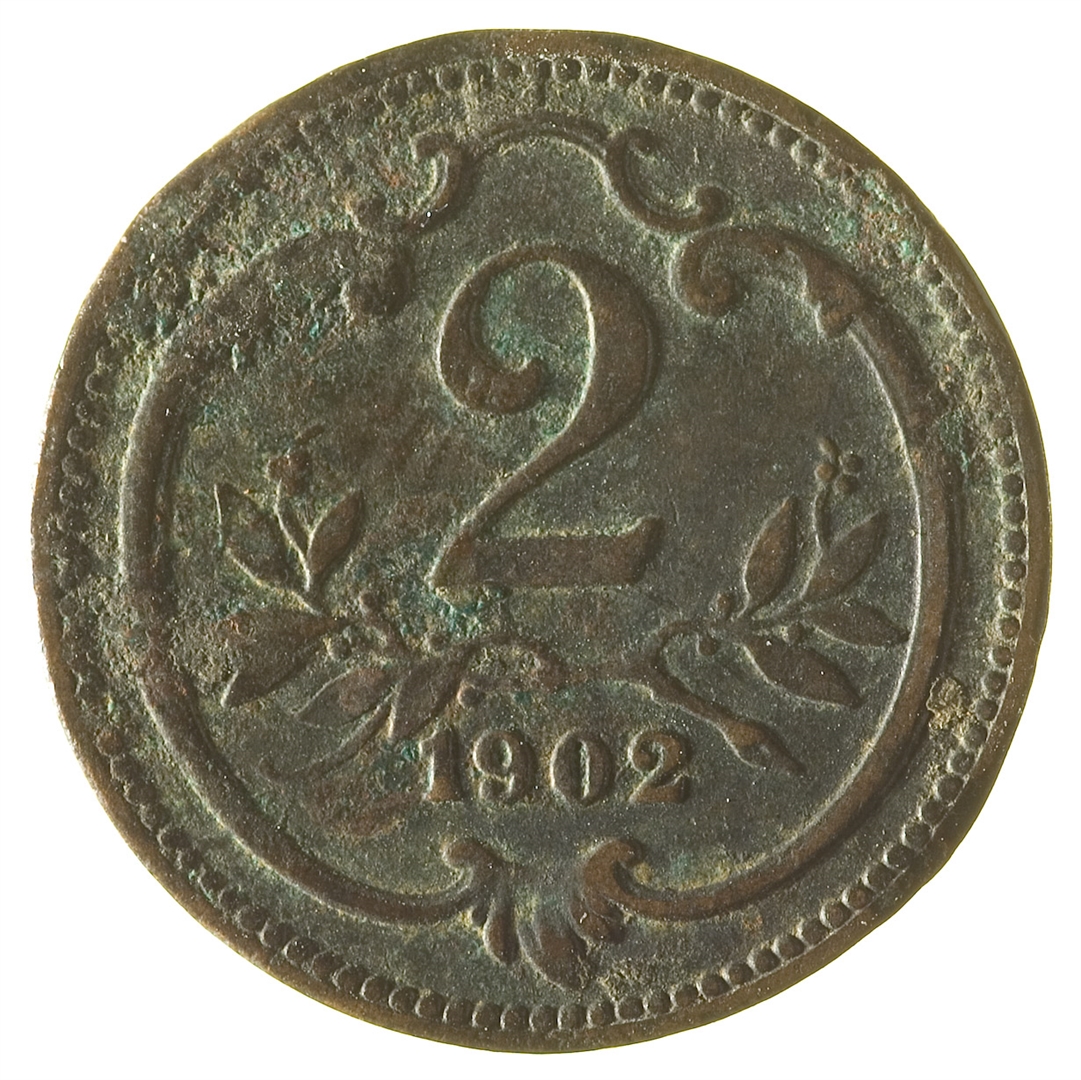 Revers: U gornjem djelu ovalnog okvira broj 2. Ispod njega maslinova grančica i godina kovanja 1902.
