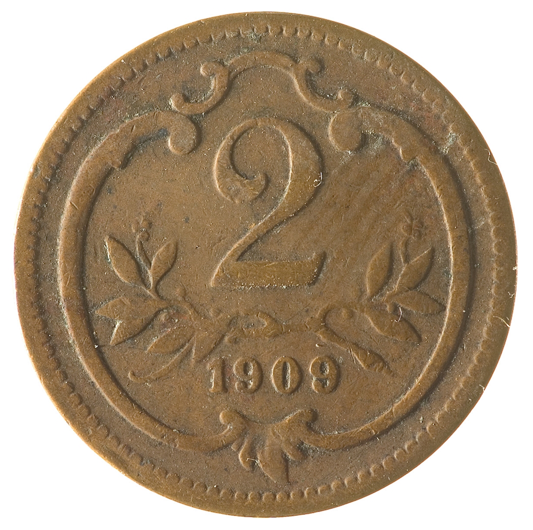 Revers: U gornjem djelu ovalnog okvira broj 2. Ispod njega maslinova grančica i godina kovanja 1909.
