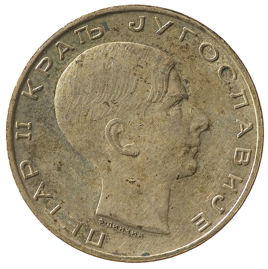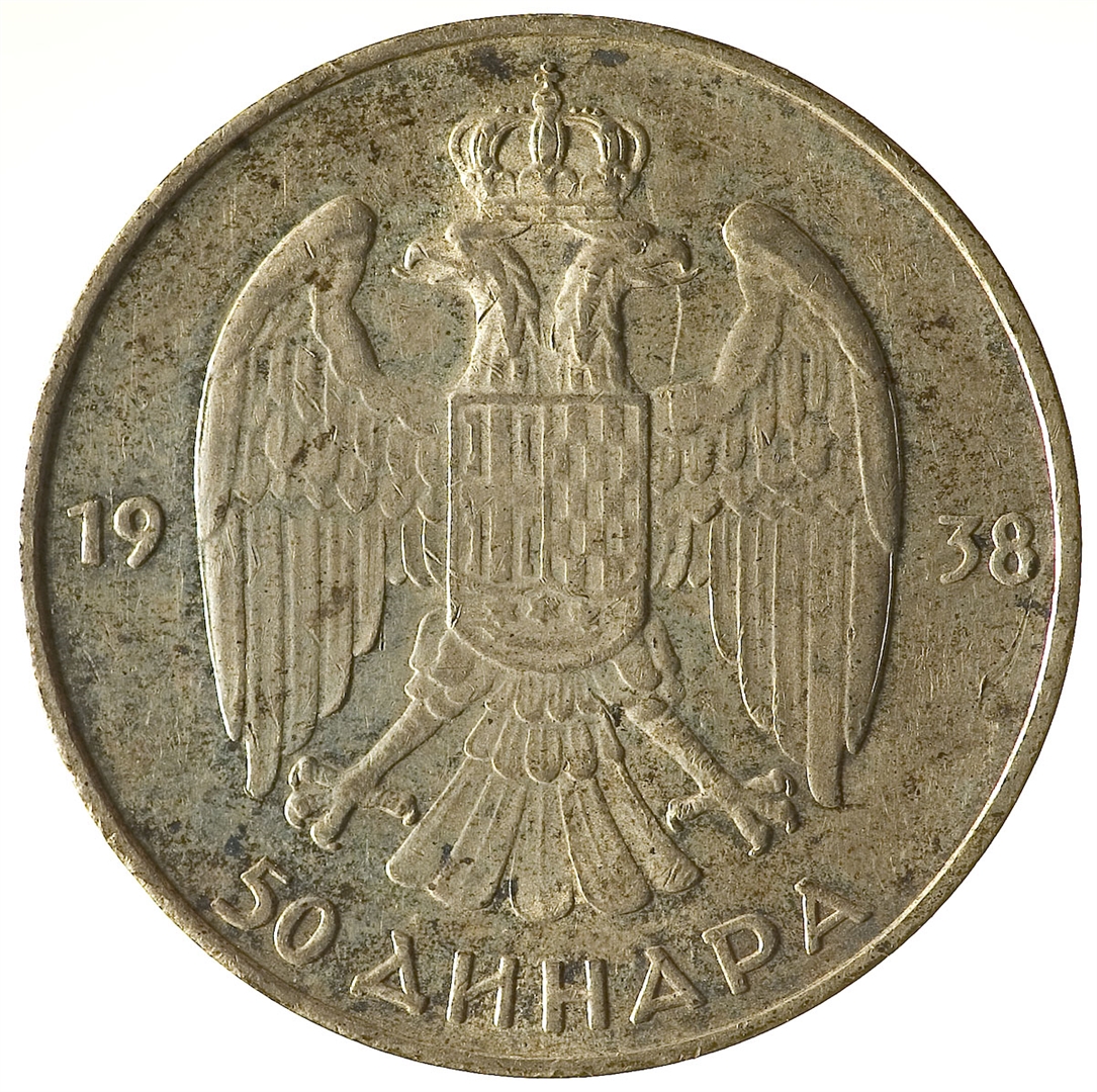 Avers: Profil kralja Ptera II s pogledom u desno. Uz rub novca natpis PETAR II KRALJ JUGOSLAVIJA na ćirilici. Revers: U sredini grb i godina 1938. Na dnu natpis 50 DINARA na ćirilici.