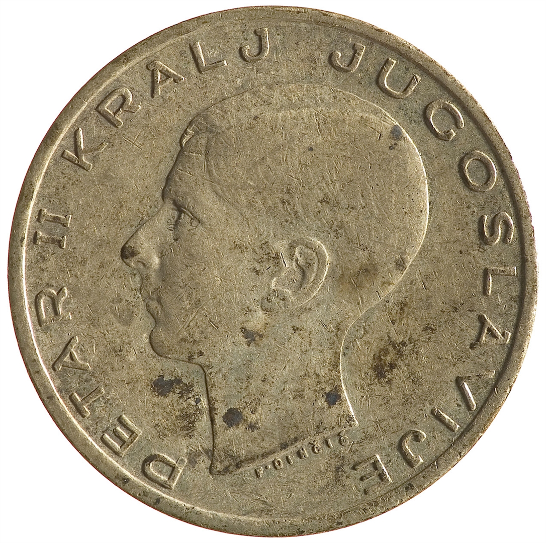 Avers: Profil kralja Ptera II s pogledom u desno. Uz rub novca natpis PETAR II KRALJ JUGOSLAVIJE . Revers: U sredini grb i godina 1938. Na dnu natpis 50 DINARA