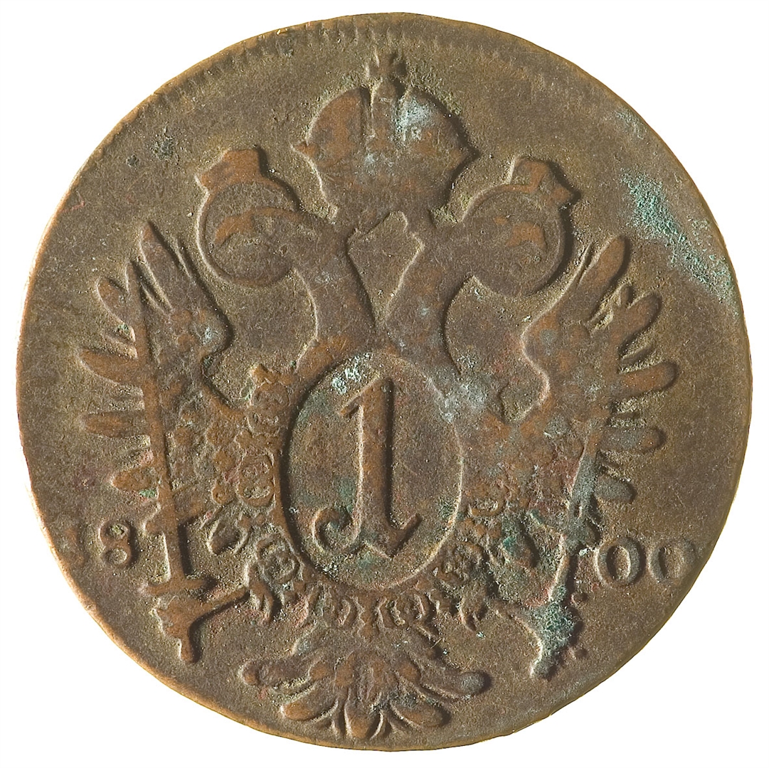 Avers: U sredini portret Franje II oko kojeg se nalazi natpis FRANC·II·D·G·R·I·S·A·GE·HV·BO·REX·A·A·. Na dnu oznaka kovnise B. Revers: Centralni dio zauzima dvoglavi orao iznad kojeg se nalazi kruna (carski grb), a lijevo i desno od njega u dva dijela godina kovanja 18 i 00. U sredini nalazi se 1 (nominala).