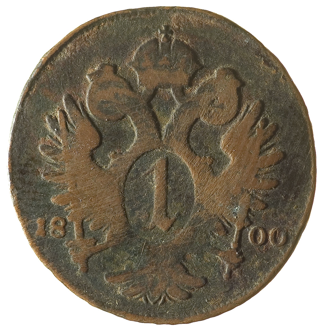 Centralni dio zauzima dvoglavi orao iznad kojeg se nalazi kruna (carski grb), a lijevo i desno od njega u dva dijela godina kovanja 18 i 00. U sredini nalazi se 1 (nominala).