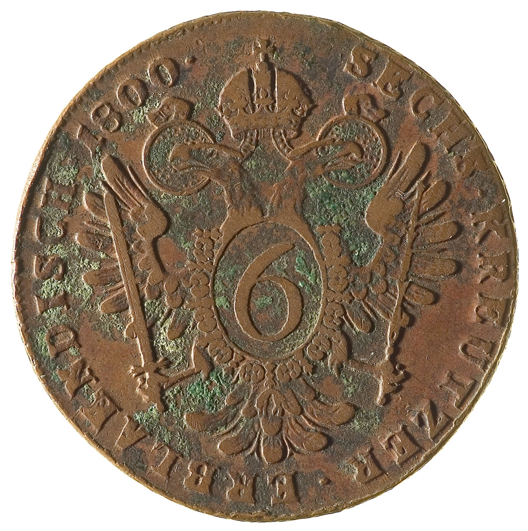 Avers: U sredini portret Franje II oko kojeg se nalazi natpis FRANZ·II·RÖM·KAI·KÖN·Z·HU·U·BÖ·ERZH·Z·OEST· Na dnu oznaka kovnice B. Revers: Centralni dio zauzima dvoglavi orao iznad kojeg se nalazi kruna (carski grb). U sredini nalazi se 6 (nominala). Uz rub natpis SECHS · KREUTZER · ERBLAENDISCH · 1800.