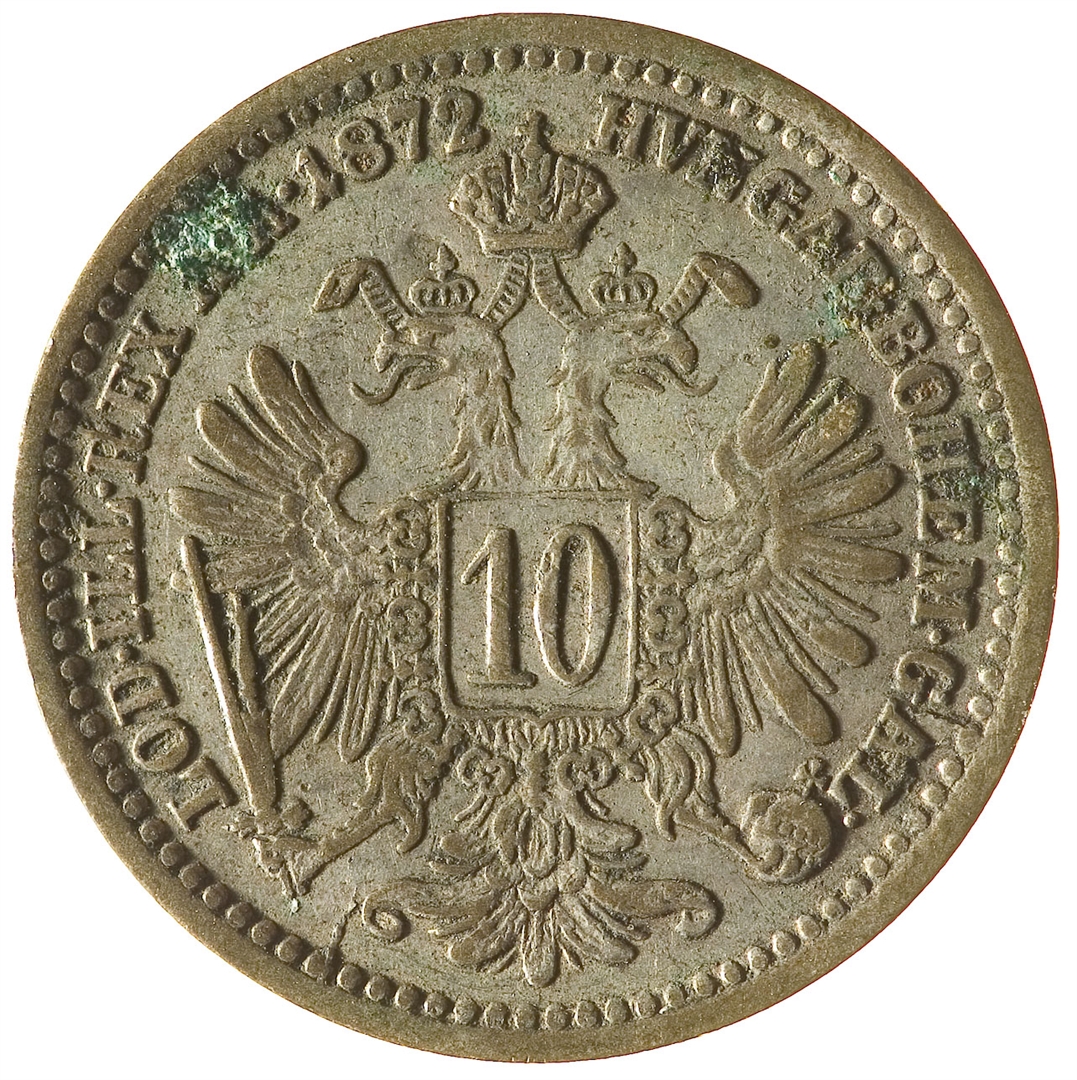 Avers: U sredini se nalazi profil Franje Josipa I sa pogledom u desno. Uz ru djelomično izlizan natpis FRANC· IOS· I· D· G· AVSTRIAE IMPERATOR. Revers: U središnjem djelu dvoglavi orao iznad kojeg se nalazi kruna, a u sredini broj 10 (nominala). Uz rub natpis HUNGAR·BOHEM·GAL·LOD·ILL·REX A·A·1872