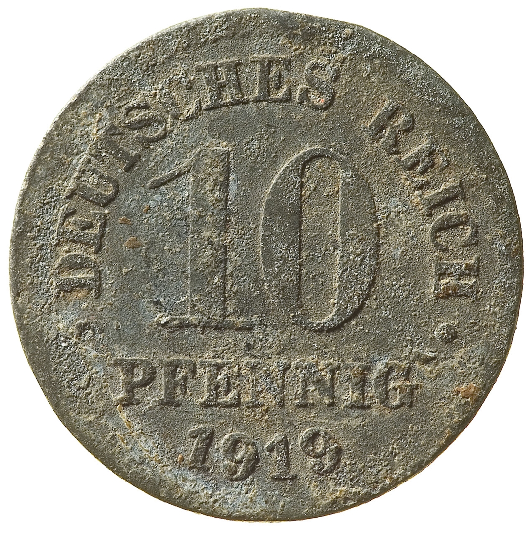 Avers: U sredini državni grb. Revers: U sredini broj 10. Oko ruba natpis DEUTSCHES REICH . U esergu u dva reda PFENNIG /1919.