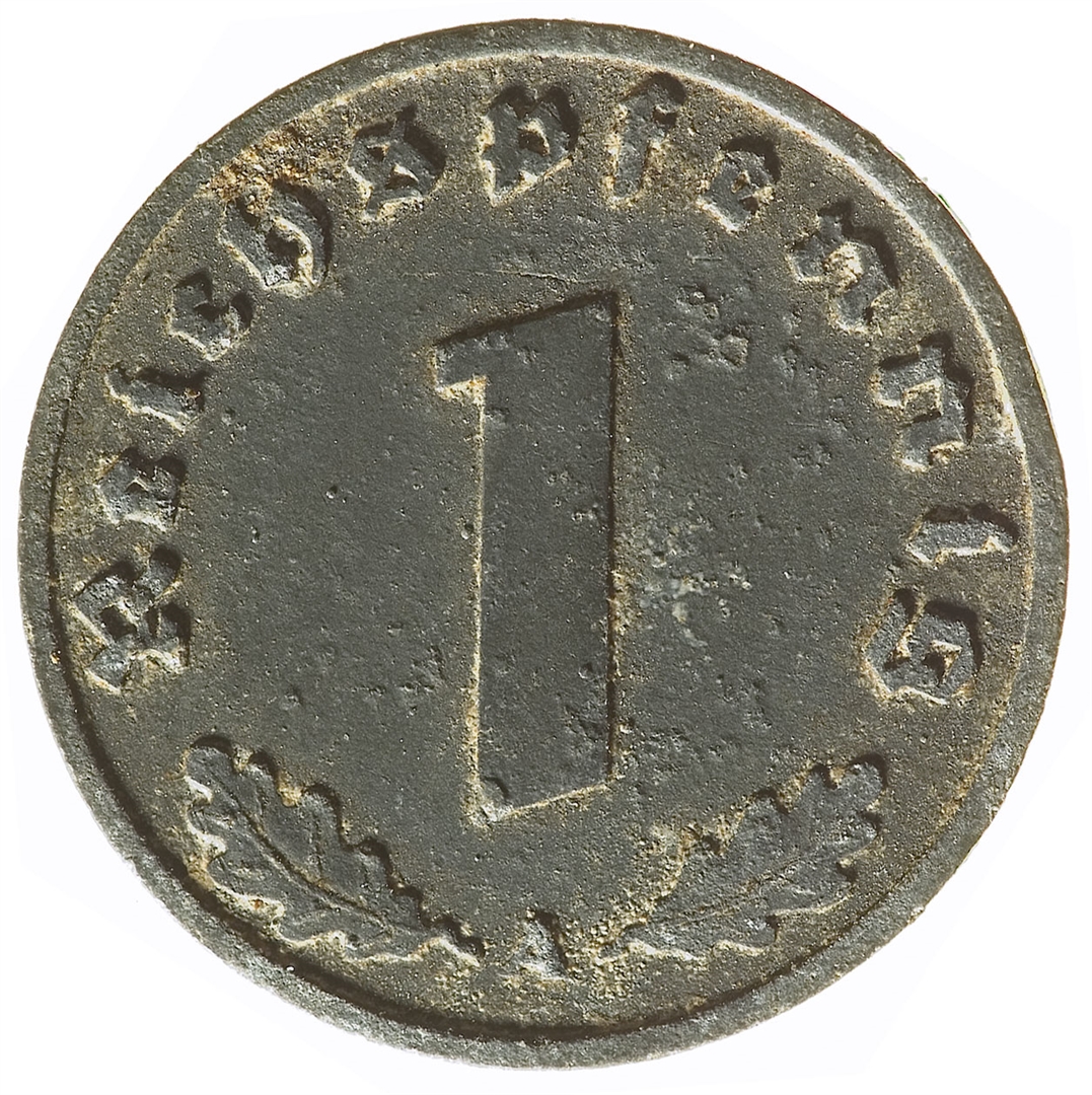 Revers: U sredini broj 1, a uz rub natpis Reichspfennig. Pri dnu između dva hrastova lista nalazi se oznaka kovnice A.