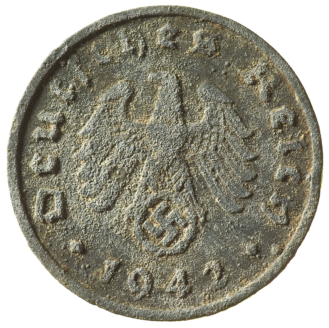 Avers: U sredini grb u obliku orla s raširenim krilima koji u kanđama drži kružni vijenac unutar kojeg se nalazi svastika. Oko ruba tekst Deutsches Reich a na dnu godina kovanja 1942.