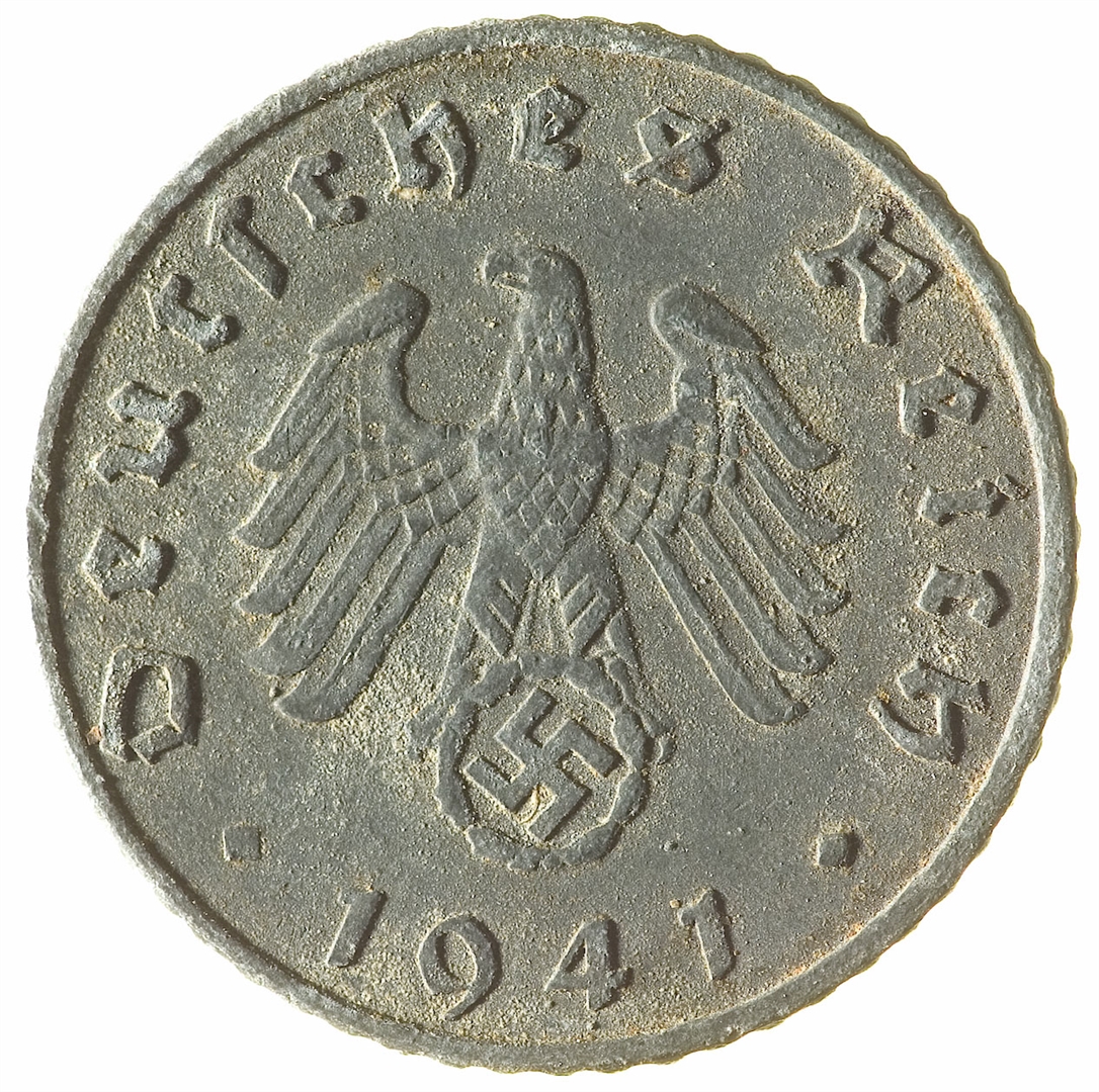 Avers: U sredini grb u obliku orla s raširenim krilima koji u kanđama drži kružni vijenac unutar kojeg se nalazi svastika. Oko ruba tekst Deutsches Reich a na dnu godina kovanja 1941