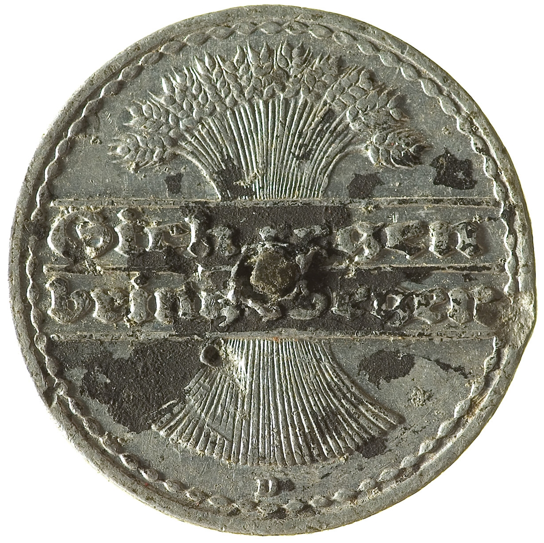 Avers: Klas žita, a u sredini u dva reda natpis Gich regen / bringt Gegen. Na dnu oznaka kovnice D. Revers: U sredini broj 50. Oko ruba tekst Deutsches Reich, a u esergu tekst u dva reda Pfennig / 1921