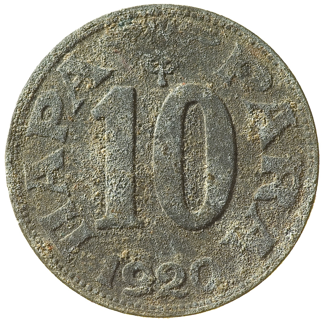 Avers: Državni grb. Revers: U sredini broj 10. Oko ruba natpis PARA na ćerilici i latinici. U dnu godina kovanja 1920.