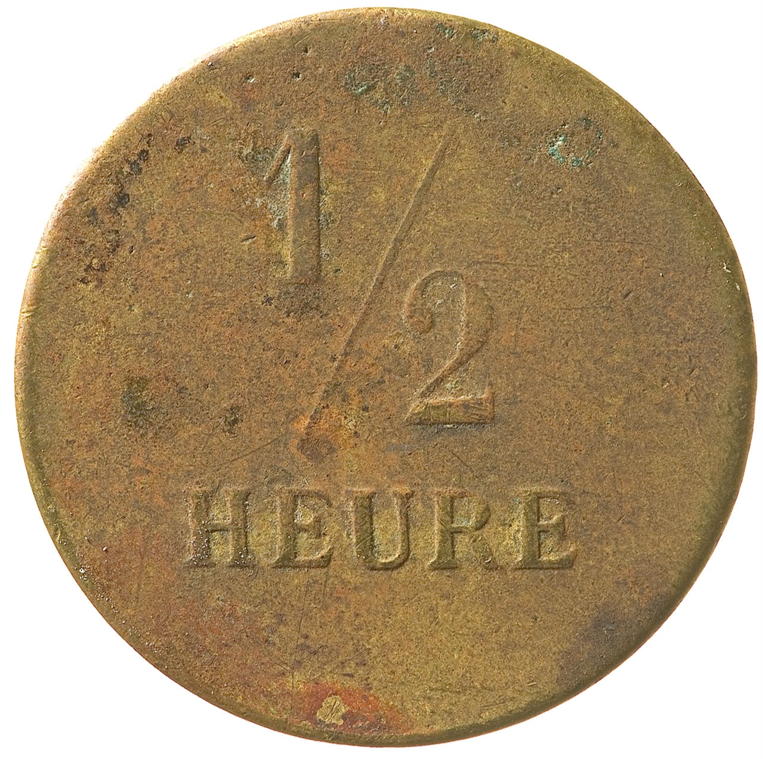 Avers: u sredini je tekst FRANCAISE DE CONSERVES, uz rub teče natpis SOCIETE GENERALE * ALIMENTAIRES * Revers: U sredini je natpis 1/2 / HEURE