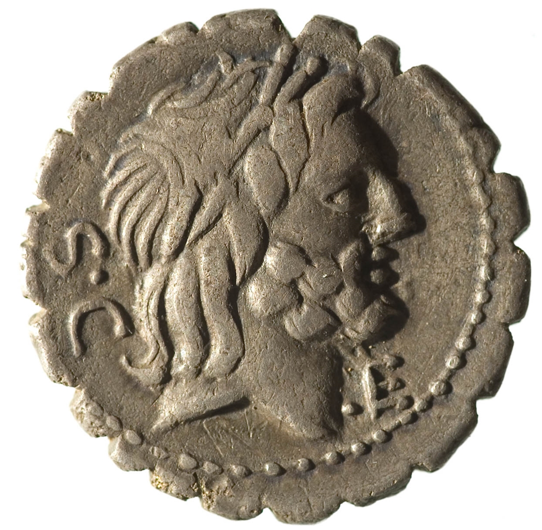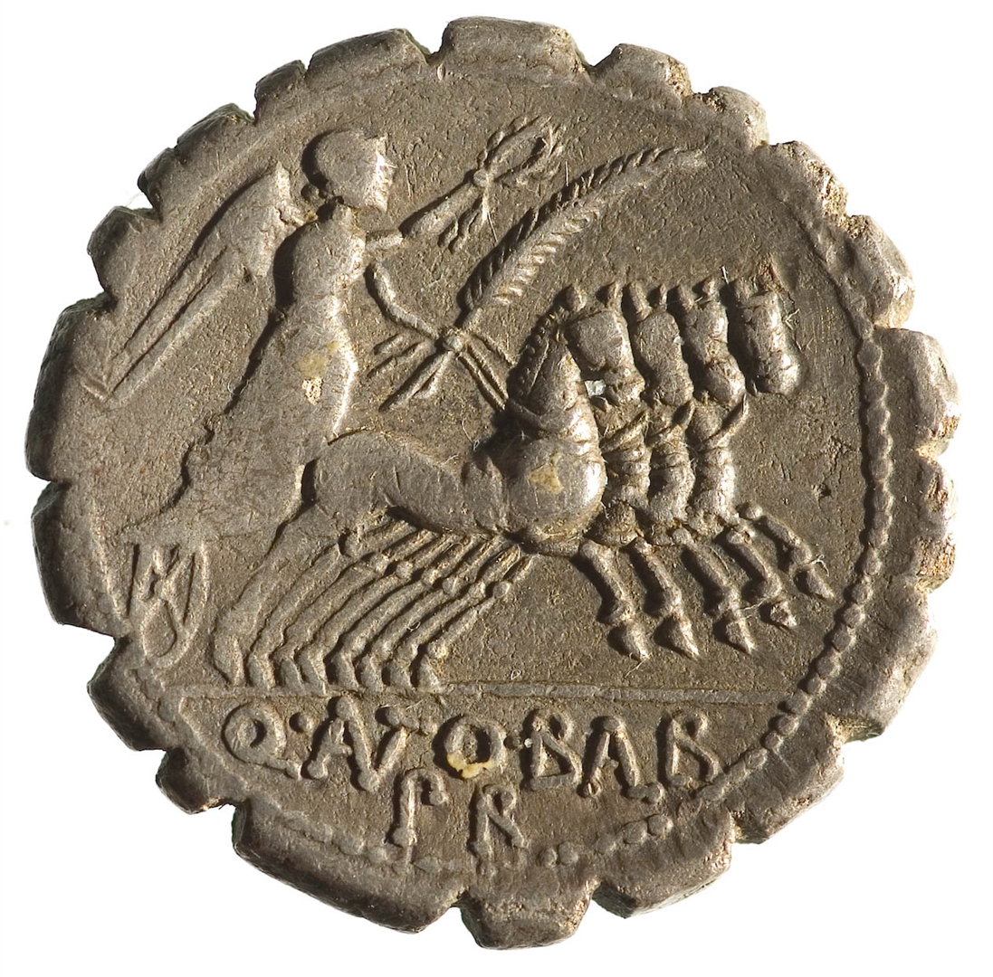 Avers: glava Jupitera u profilu udesno; natpis: S•C •E Revers: krilata Viktorija u kvadrigi; u ekzergu natpis: Q. ANTO. BALB. / PR.