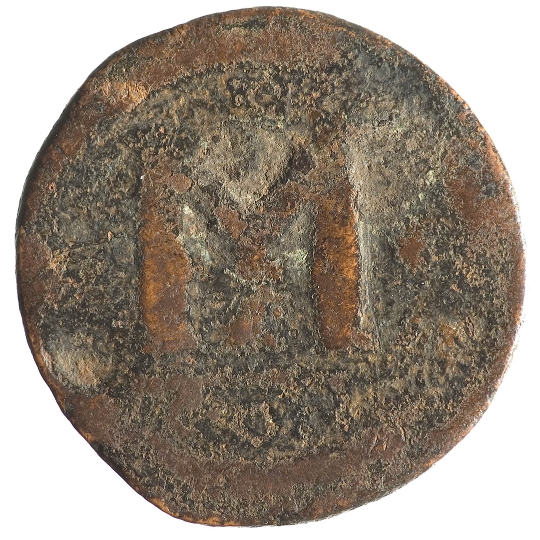 Avers: popsje cara okrenuto udesno, izlizan. Revers: veliko slovo M, izlizan; nečitka oznaka kovnice; u egzergu (C)ON
