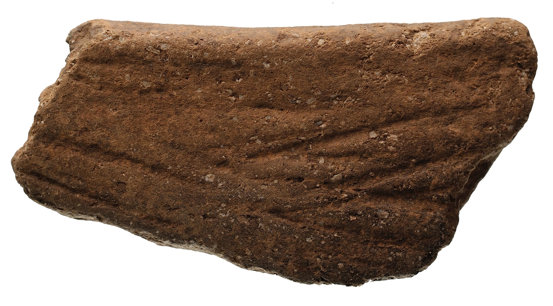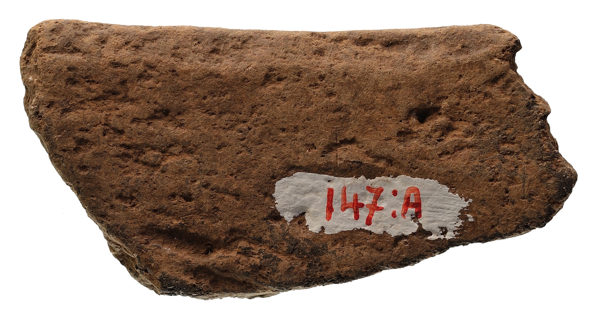 Ulomak posude sa zaobljenim obodom ispod kojeg se nalazi trbuh ukrašen metličastim ukrasom. Keramika je crvenkaste boje sa primjesama kalcita.