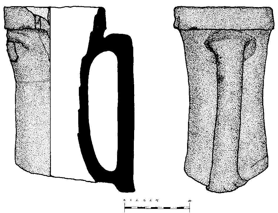 Grlo amfore naglašenog trakastog oboda ispod kojeg se spušta cilindrični vrat na kojem se nalazi ručka elipsastog presjeka koja se okomito spušta na rame amfore. Nedostaje jedna ručka.