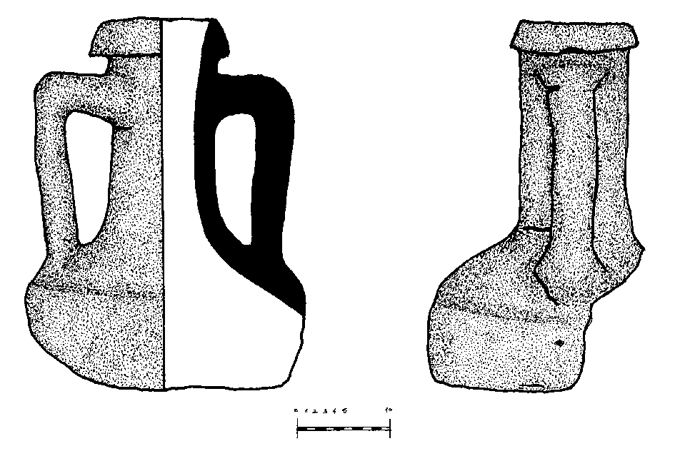 Gornji dio amfore. Obod je zakošen prema dolje i trokutastog presjeka. Vrat je blago konusan. Ručke su izdužene, ovalnog presjeka. Započinju ispod oboda i završavaju na naglašenom ramenu. Nedostaju tijelo i dno.